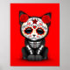 Cute Red Day of the Dead Kitten Cat, red Poster