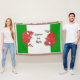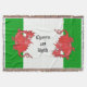 A patriotic Throw Blanket to personalise, with two cute red dragons on a green and white background, similar to the Welsh national flag; from a hand-painted whimsical illustration by Judy Adamson.
