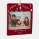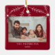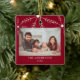 Cute red and white photo Christmas ornament with white snowflakes design.