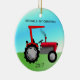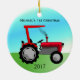 A farmer's favourite old red tractor on a personalised "baby's first Christmas" ornament.