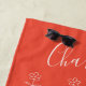 Cute Red Floral Line Art Drawing Personalised Beach Towel