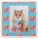 Cute Red Fox Animal Teal Rose Roses Coaster set, with a fully customizable name. A glorious watercolor floral design. Designed from my original watercolor paintings, that I painted from my own flower garden.