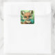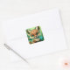 Cute Red Fox Orange Blue Flower Square Sticker