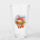 Cute cartoon red fox with a bouquet of autumn leaves.