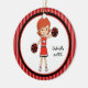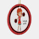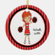 This is an adorable Christmas ornament for that cheerleader in your life! It's a cute cheerleader with red hair hair and a red bow in her hair. She's holding two pom poms in her hands. She's wearing a red uniform with white and black on it. She's set on a large white inner circle outlined in red and black. The background is dark and light red stripes. Check out the many other designs and colours in this line. Cherish this keepsake for many ,many years! ©crafty clip