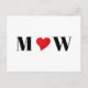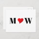 Cute red heart custom couple initials monogram modern typography Postcard.