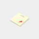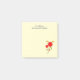 Personalised sticky notes with a whimsical illustration of several red flowers with big hearts attached to a stem with green leaves. 2 quaint yellow butterflies hovering nearby. Light yellow background.