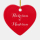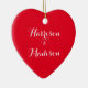 Cute red heart script calligraphy couple names ceramic tree decoration