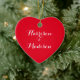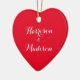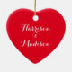 Personalized custom script calligraphy couple’s names romantic elegant chic red heart Christmas Ceramic Ornament. Available in different shapes and materials.
