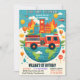 Cute Red Hot Fire Truck Engine Safety 1st birthday Invitation