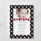 This 5x7 girls birthday party invitation is a cute way to announce your child's birthday party! It has a black and white polkadot background. In the centre, there is a place for you to add your own photograph. There is a red ladybug and flower border beneath the picture. You can easily customise your party information.