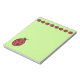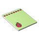 Cute red and black ladybugs on a bright green background decorate this notepad.The design is from original art.