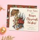 Spread joy and laughter this holiday season with these cute and funny mushroom themed Christmas cards. The design features a hand-painted illustration of a merry mushroom building a snowman outside their red mushroom house. The text reads, "Hugs, kisses and warm Chrismush wishes!" Create your own one-of-a-kind holiday cards by adding your own name or family name.