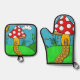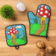 cute red mushroom oven mitt & pot holder set