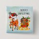 Cute red -nosed reindeer pulling sleigh Christmas 15 Cm Square Badge
