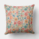 Cute Red Orange Blue Floral on White Wood Cushion