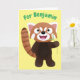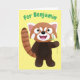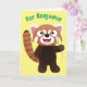 This happy, cute red panda is enjoying a bamboo snack. Drawn in adorable cuddly cartoon style.