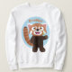 This happy, cute red panda is enjoying a bamboo snack. Drawn in adorable cuddly cartoon style.
