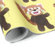 This happy, cute red panda is enjoying a bamboo snack. Drawn in adorable cuddly cartoon style.