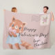 This cute, custom Valentine blanket features a pastel, dusty pink theme with a sweet little red panda. A postal stamp is placed in the top right to resemble a mailed letter. A sample name is printed over a heart at the bottom which you can personalise to include your own name or other custom Valentine's day message.