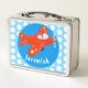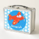 Cute red plane flying cartoon illustration metal lunch box
