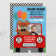 This car race themed birthday design is a thrilling and exciting design for kids who love cars and racing. The chequered flags, race car, a racetrack along with bold typography and colours create this design visually appealing and engaging. Add a portrait/ vertical photo of your kid and make it your own! This design is unique and ideal for making a memorable birthday party experience for your child as well your guests.