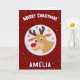 Cute Red Reindeer Kid`s Name Merry Christmas Card