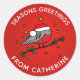 Spread some holiday cheer this Christmas with these cute red robin Christmas stickers! Customise by adding your first name or family last name. Keep the Seasons Greetings text or add your own custom message.
