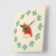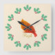 Cute Red Royal Bird & Holly Berries Square Wall Clock