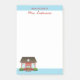Fun and cute cartoon illustration of a red and white school building with brown roof. There is a text area on the top that now reads "From the desk of" together with a personalizable text area for a name. On the top and bottom there are soft blue borders.