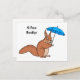Cute red squirrel with umbrella cartoon postcard