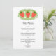 This red strawberry, leafy, cute wedding menu is great for a summer wedding! The unique boho design features cute picnic strawberries in red, green leafy foliage, and cute dandelions. Personalise the menu with your own menu options.