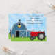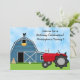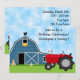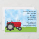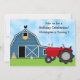 Cute Red Tractor and Blue Barn Farm Birthday Party Invitation