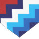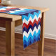 A 16” x 108” table runner featuring a colourful, cute pattern design of red, white, and blue chevrons.