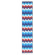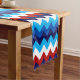A 14” x 72” table runner featuring a colourful, cute pattern design of red, white, and blue chevrons.