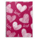 Cute Red White Scribbled Hearts with Love Script Notebook