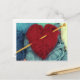 Cute red wool heart with knitting needle postcard