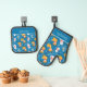 Cute Reindeer and Snowman Blue Oven Mitt & Pot Holder Set