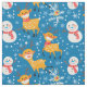 A fun cartoon Reindeer and Snowman kids Christmas Fabric. A fun design featuring snowmen wearing red scarves and prancing reindeer with a snowy blue background. A great design for your quilting and crafting projects or home decor.