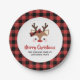 Cute Reindeer Buffalo Bow Red Merry Christmas Paper Plate