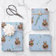 Cute Reindeer Custom Photo Frame Blue Wrapping Paper Sheet