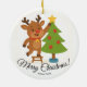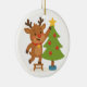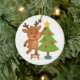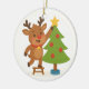 Cute Reindeer Decorating Tree Personalized Name Ceramic Tree Decoration