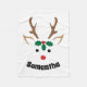Our personalised Christmas reindeer face blanket features a distinctive red nose, ears, antlers and festive holly. Pair it with a matching t-shirt, mug, bag or ornament. Customise with a name, or with the text of your choice.