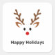 Cute Reindeer Face with Red Nose Name Square Sticker