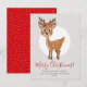 This simple and elegant kids 'Happy Holidays' floral family Christmas holiday card features a cute reindeer with a xmas wreath with poinsettias, pine and berries. The reverse of card features a snowy pattern on a Christmassy red background. On the front of the card you are able to customise the script, and add your name, a message, and the year in cursive typography. Perfect for your xmas holiday card this winter!