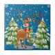 Cute Reindeer in the Snow with trees and ornaments hanging from his antlers