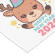 The festive holiday table cloth idea works well with the cute reindeer theme.