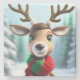 Winter scene with a cute Reindeer wearing a scarf.