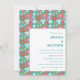 Cute Groovy Retro 60s Flowers Turquoise Blue and Hot Pink Wedding Invitation