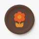 Cute Retro 70s Flower Orange and Brown Paper Plate